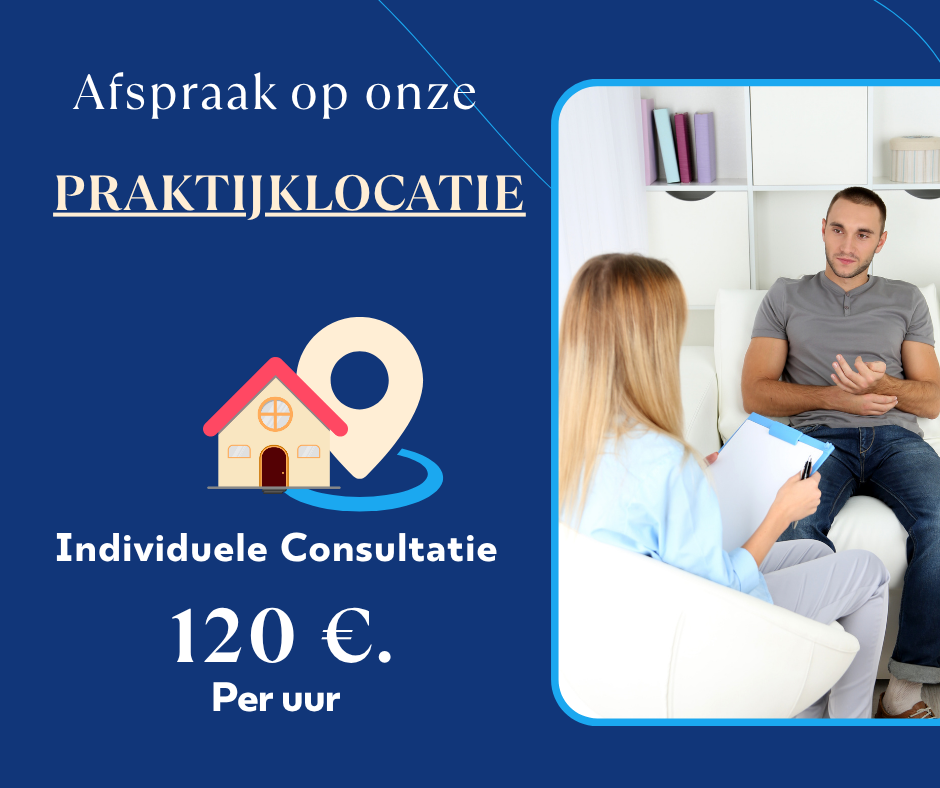Een persoonlijk gesprek in onze praktijkruimte, geschikt voor kennismaking of oriëntatie.